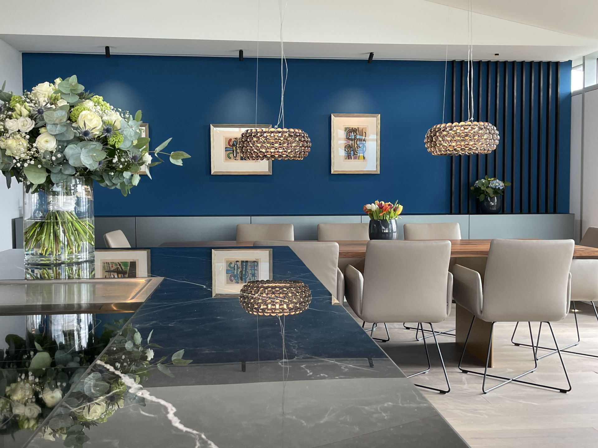 Auswahl & Lieferung der Möbel, Vorhänge, Leuchten, etc. (Cor, Freifrau, Flexform, Oluce, Foscarini, Qlock2, Fischbacher, etc.)