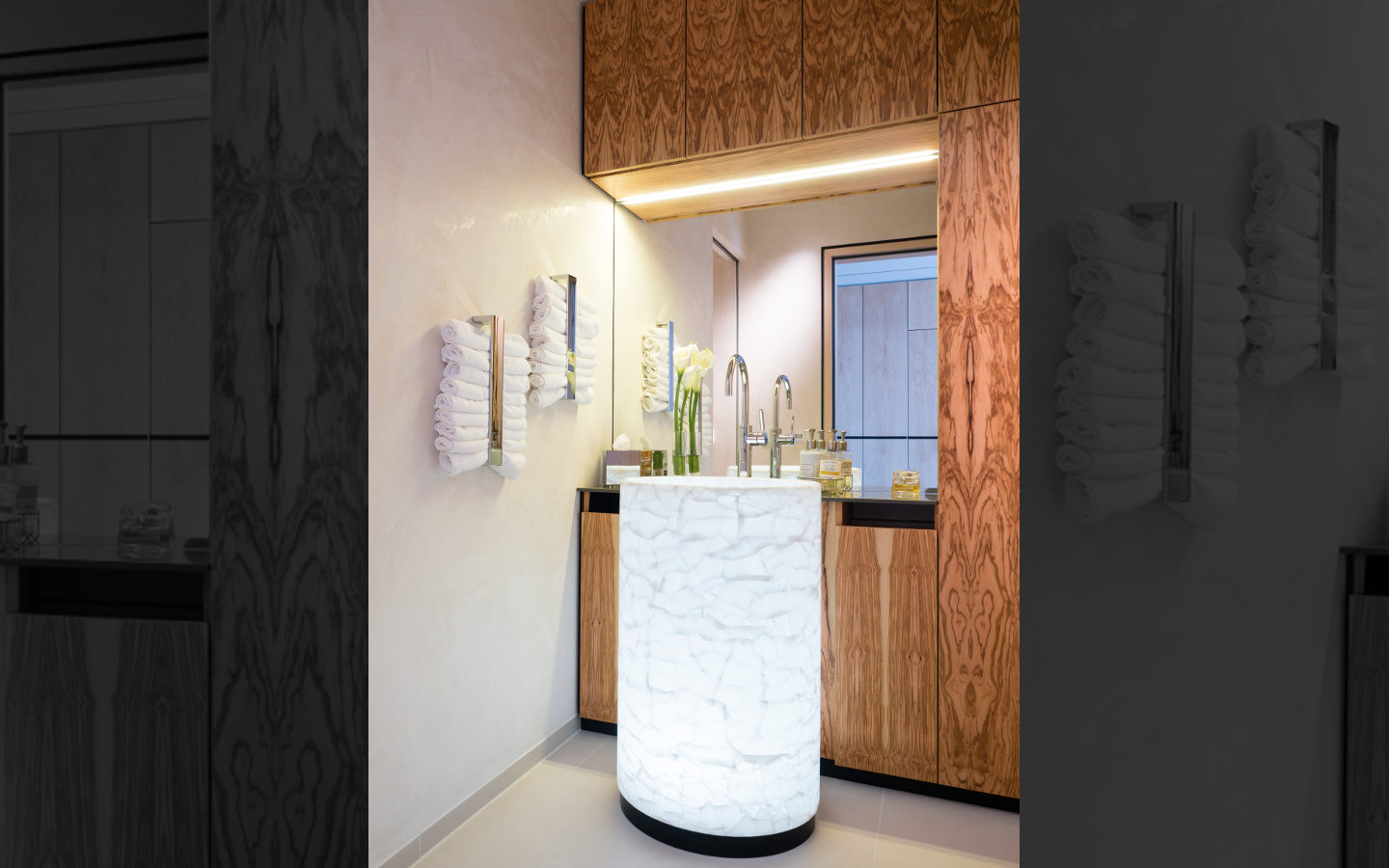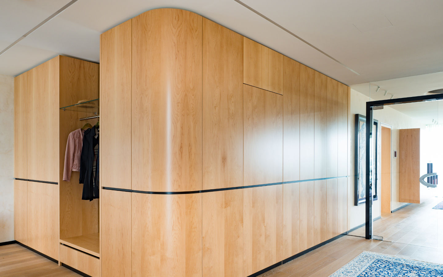Fertigung und Montage sämtlicher Sondermöbel wie der gerundeten Garderobe, Badmöbel, Kleiderschränke